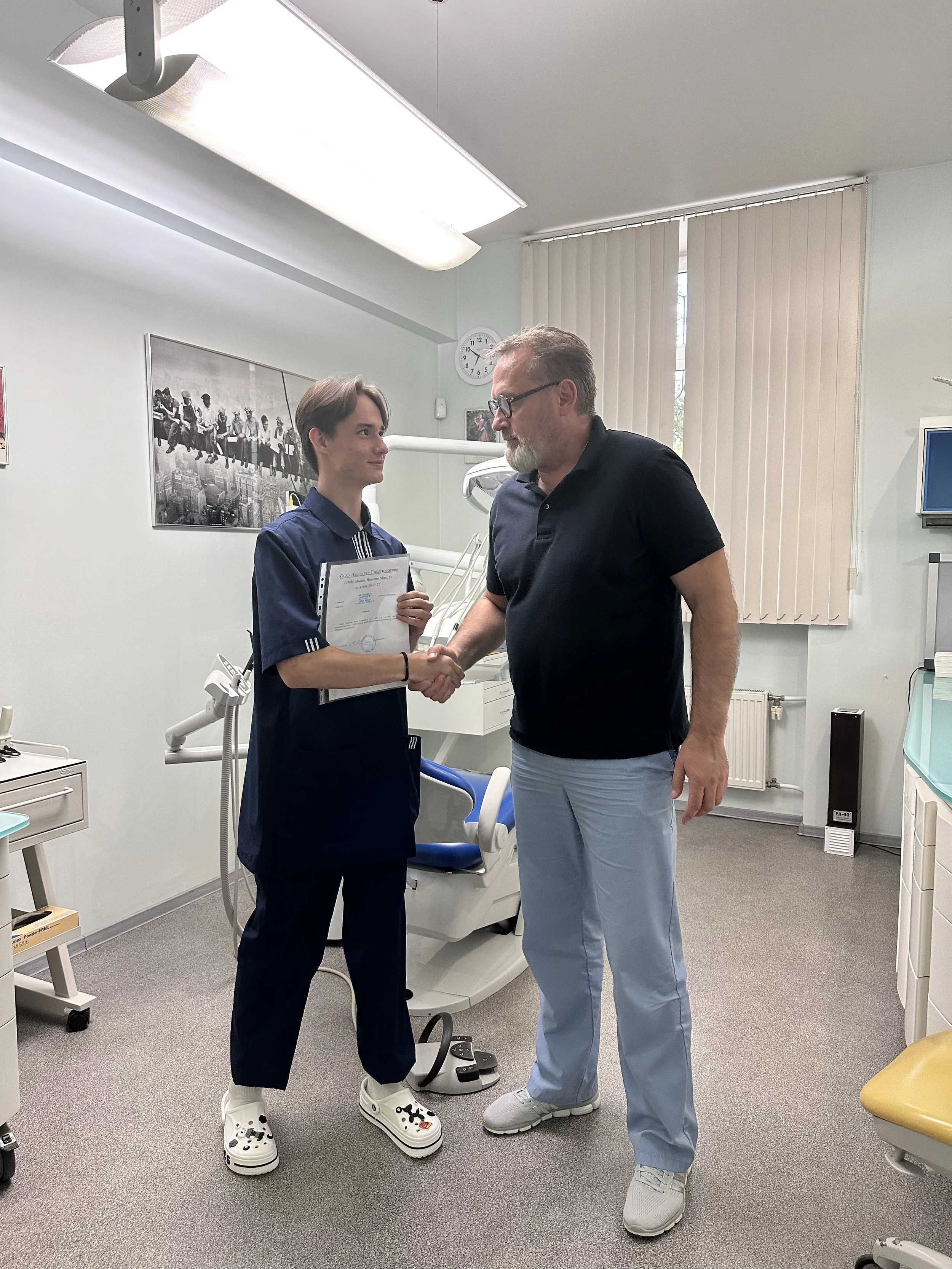 I shadowed dentists at several clinics in Russia and America, where I observed different procedures and daily operations of a dental practice. I watched how dentists worked with patients, performed treatments, and collaborated with their teams. This experience gave me exposure to both the technical side of dentistry and the importance of patient communication and care.